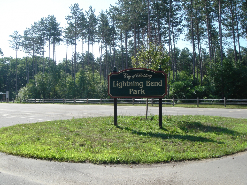 1001 Merrick Street Google Map This pristine property along a jagged bend in the Flat River is rustic and wild. Trails beckon you to adventure. Spend a day wandering in the woods by the river, breathing in the natural beauty. The park pavilion is perfect for picnics and gatherings. Lightning Bend Park also features SMASH ? an 18 hole Disc Golf course.